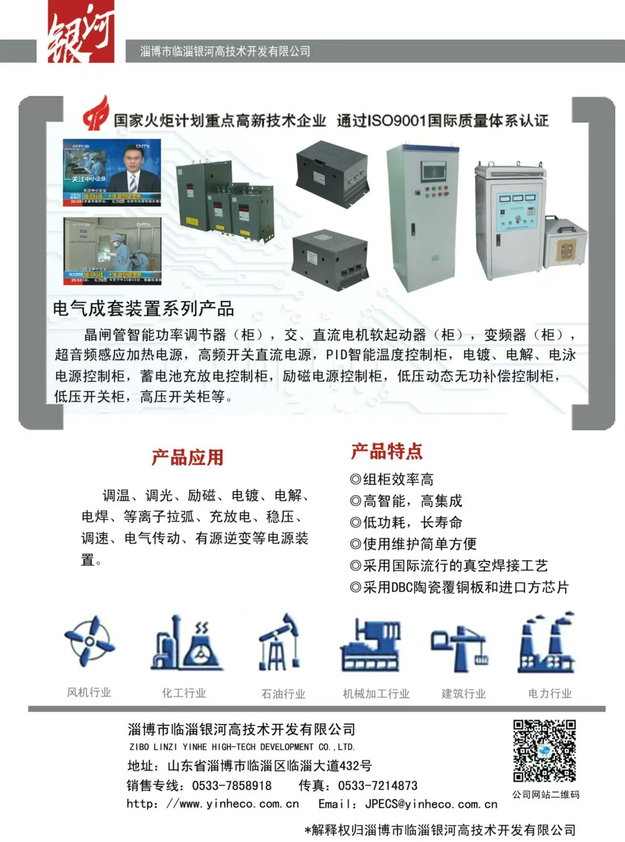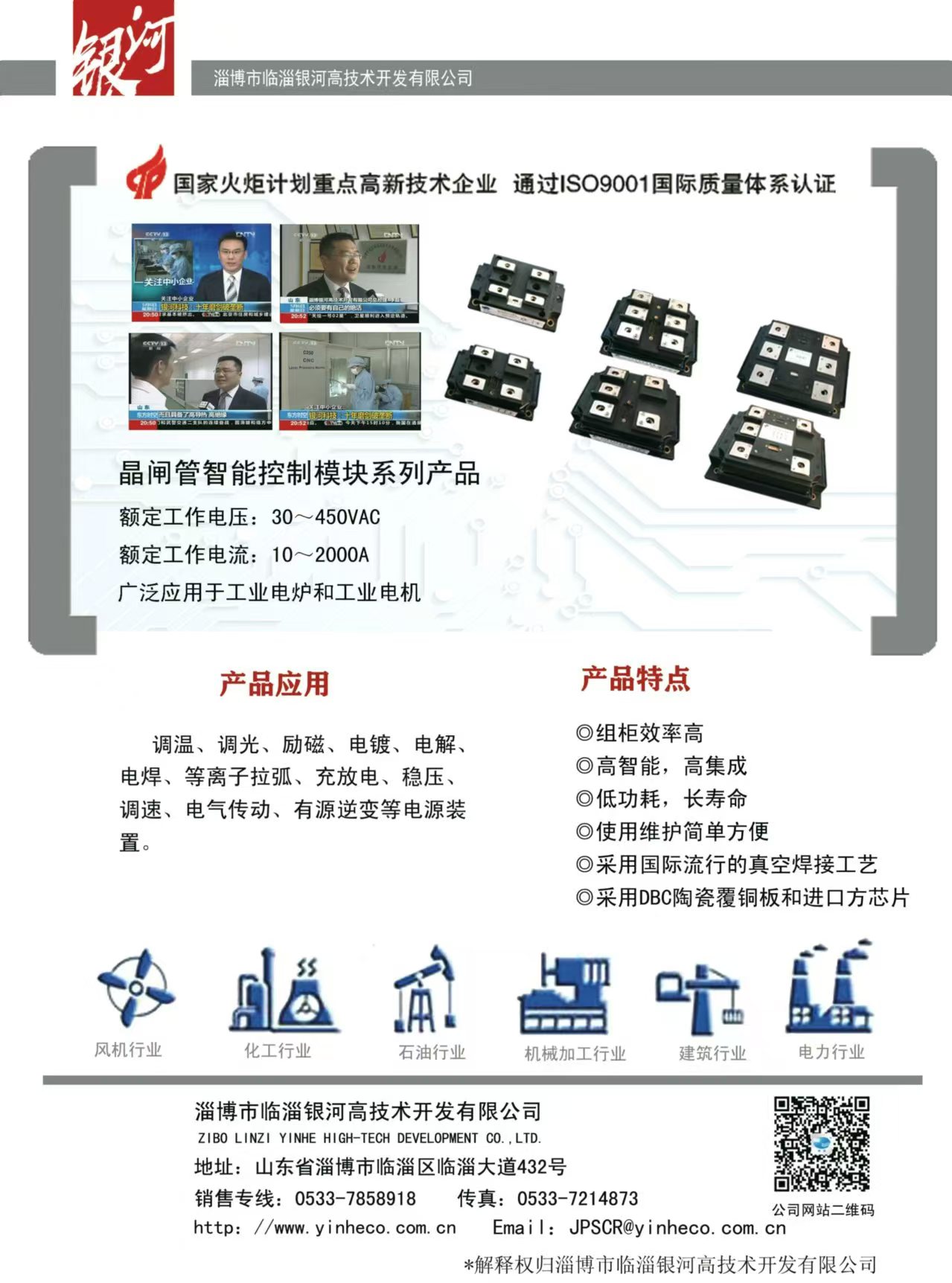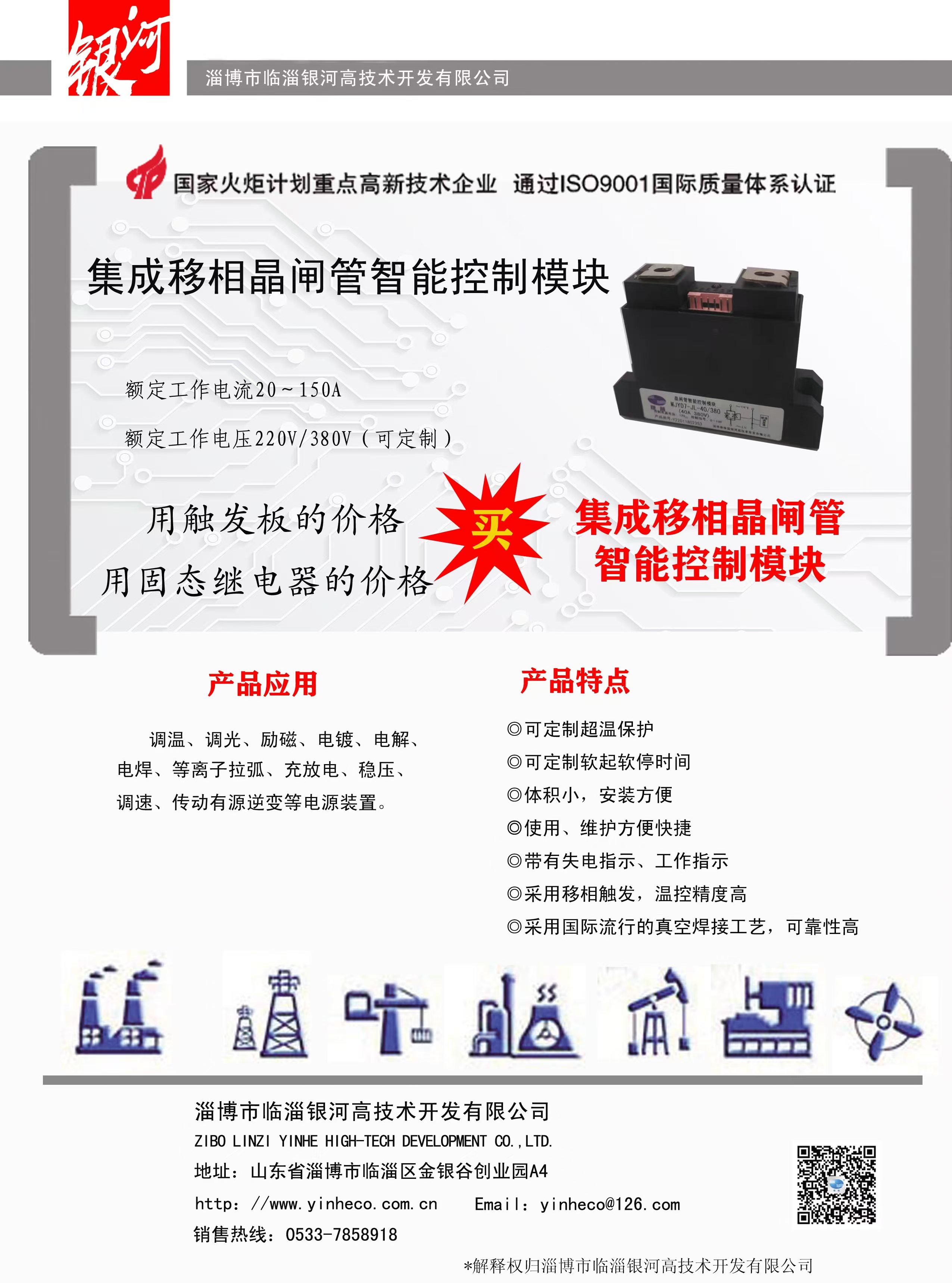 主要產品:DBC陶瓷覆銅板(190.5×138mm的母板或蝕刻線路的單、雙面成型零件)、大功率LED陶瓷覆銅散熱基板、聚光太陽能光伏陶瓷覆銅散熱基板、射頻電路用陶瓷覆銅板;晶閘管智能控制模塊、恒流恒壓控制模塊、除鐵器模塊、MTC、MTX、MTG、MDC、MDS、MDQ、SSR(固態(tài)繼電器)、晶閘管移相觸發(fā)控制板、恒流恒壓控制板、雙閉環(huán)直流調速控制板、蓄電池充放電控制板等;承接各類控制柜(加熱電源控制柜、直流調速屏、交流或直流電機軟起動控制柜,充電電源控制柜、電鍍或勵磁電源控制柜等)。